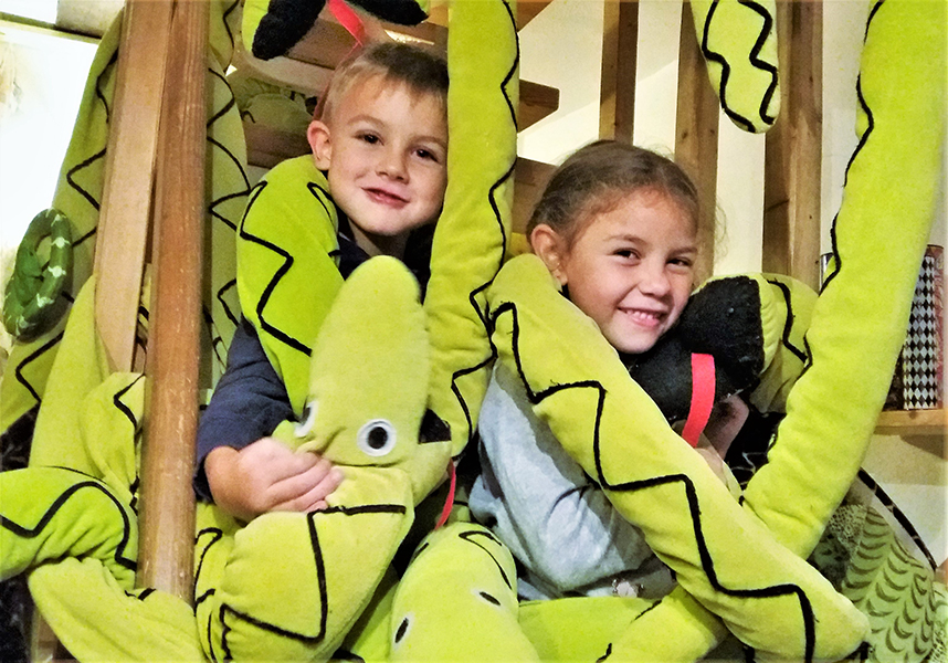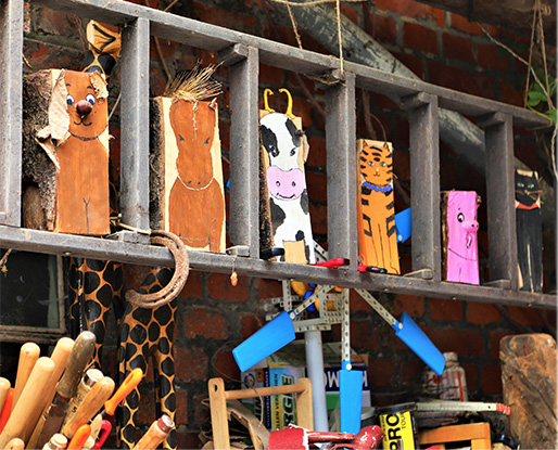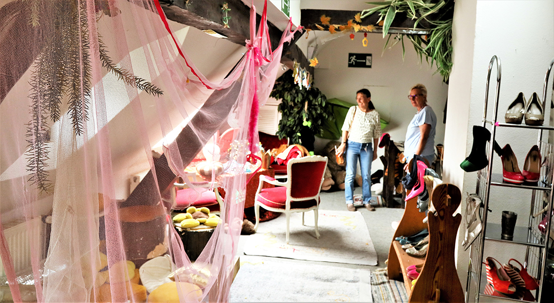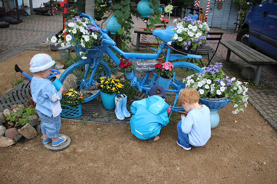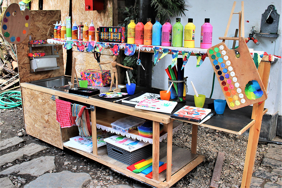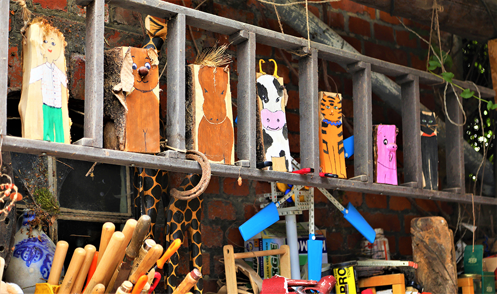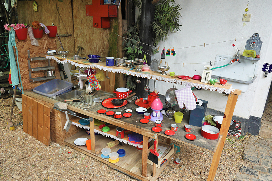 Das Abenteuer-Land besteht aus liebevoll gestalteten Innen- und Außenräumen, kleinen Kammern, Stallungen und Kellergewölben, die allesamt viel Raum für eigenes Tun, Staunen, Stöbern, Ausprobieren und Bewegen lassen. Das Besondere am Kinderspielhaus ist die Mischung aus Werkstatt, Labor und Omas Dachboden.